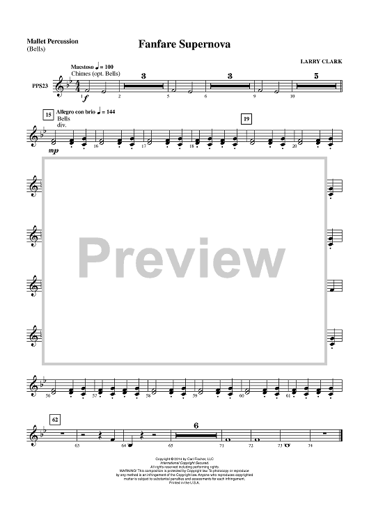 Digital Sheet Music for Fanfare Supernova - Mallet Percussion by Larry Clark scored for Concert Band; id:452454