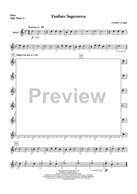 Digital Sheet Music for Fanfare Supernova - Oboe (Opt. Flute 2) by Larry Clark scored for Concert Band; id:452441