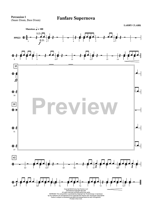 Digital Sheet Music for Fanfare Supernova - Percussion 1 by Larry Clark scored for Concert Band; id:452456