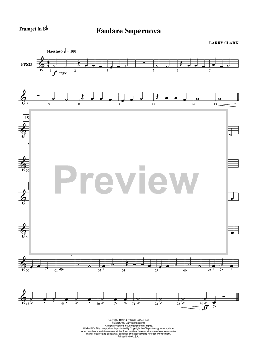 "Fanfare Supernova - Trumpet in Bb" Sheet Music by Larry Clark