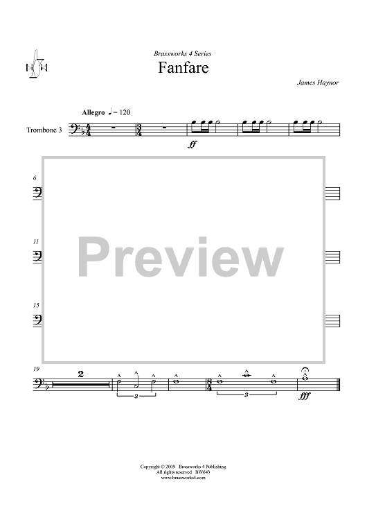 Digital Sheet Music for Fanfare - Trombone 3 by James Haynor scored for Brass Ensemble; id:411215