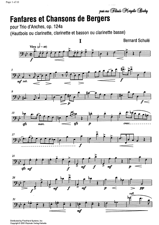 Digital Sheet Music for Fanfares et Chanson de Bergers - Bassoon/Bass Clarinet by Bernard Schulé scored for Oboe or C Clarinet/C Clarinet/Bassoon or Bass Clarinet; id:350793