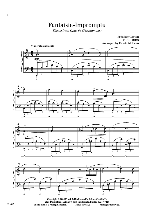 "Fantaisie-Impromptu Theme from Op. 66" Sheet Music by Frederic Chopin