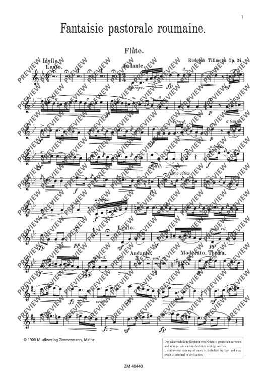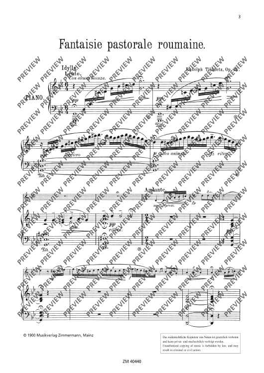 "Fantaisie pastorale roumaine" Sheet Music by Rudolph Tillmetz