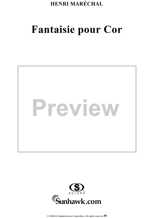 Digital Sheet Music for Fantaisie pour Cor - Horn in F by Henri Marechal scored for French Horn/Piano; id:234802