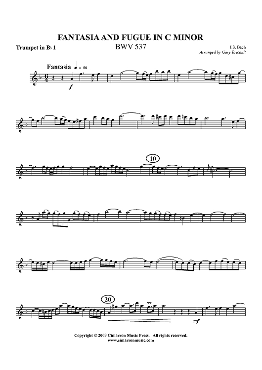 Digital Sheet Music for Fantasia and Fugue in C Minor, BWV 537 - Trumpet 1 in Bb by Johann Sebastian Bach, Gary Bricault scored for Brass Quintet; id:416309