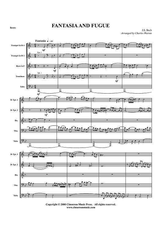 Digital Sheet Music for Fantasia and Fugue - Score by Charles Warren, Johann Sebastian Bach scored for Brass Quintet; id:424298