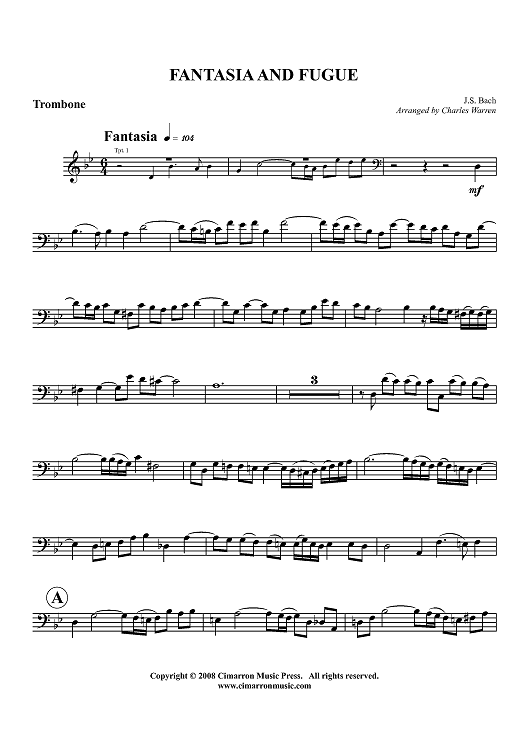 "Fantasia and Fugue - Trombone" Sheet Music by Johann Sebastian Bach