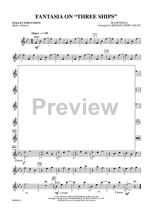 Digital Sheet Music for Fantasia on "Three Ships" - Mallet Percussion by Michael Story, Traditional scored for Concert Band; id:314782