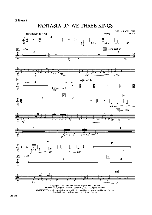Digital Sheet Music for Fantasia On We Three Kings - F Horn 4 by Brian Balmages scored for Symphony Orchestra; id:436797