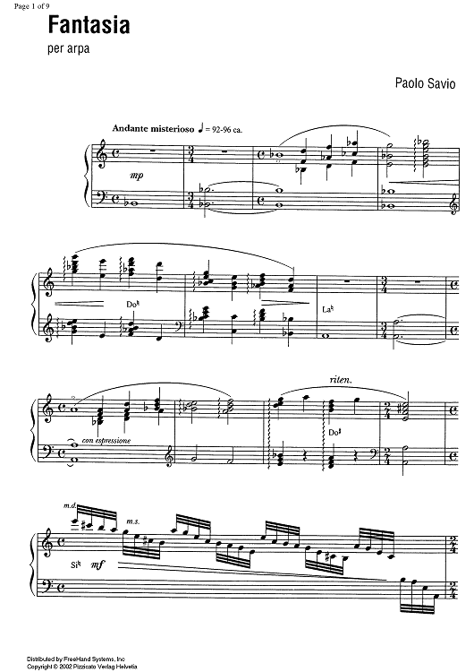 Digital Sheet Music for Fantasia by , Paolo Savio scored for Harp Solo; id:351173