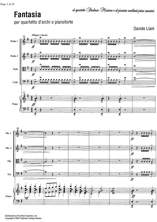 Digital Sheet Music for Fantasia - Score by , Davide Liani scored for Piano Quintet; id:335306