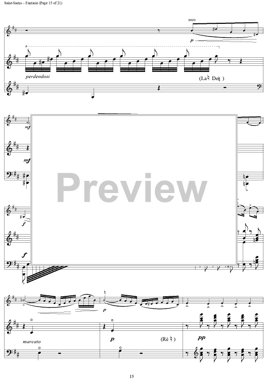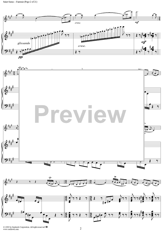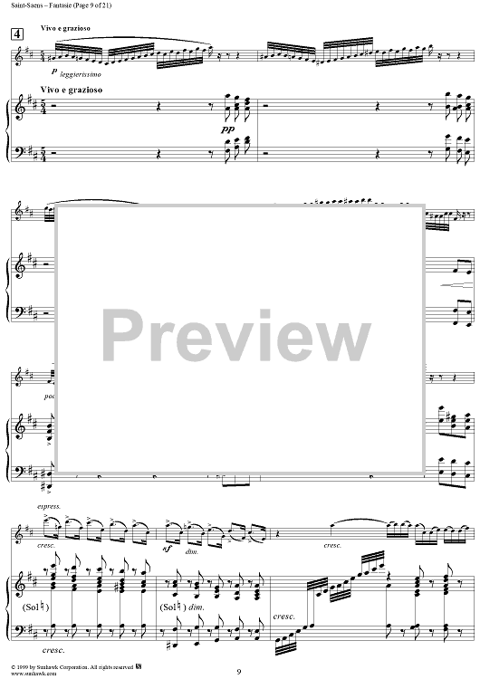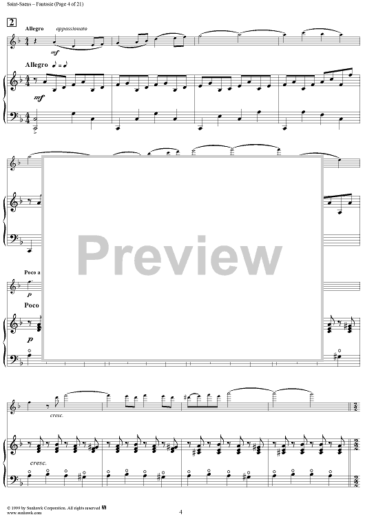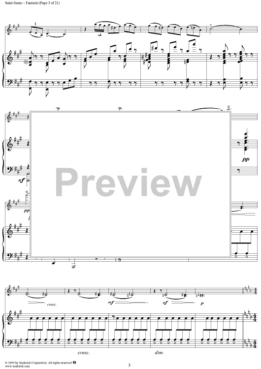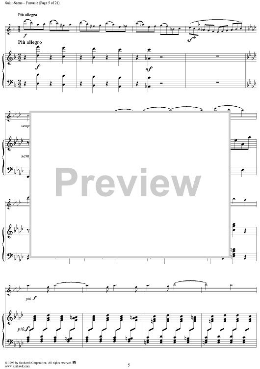 Digital Sheet Music for Fantasie in A Major, Op. 124 - Score by Camille Saint-Saëns scored for Violin/Harp; id:256435