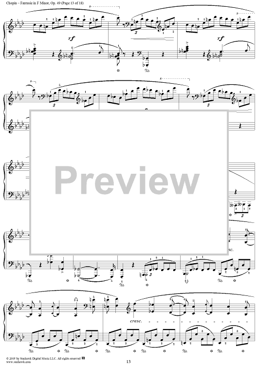 Digital Sheet Music for Fantasie in F Minor, Op. 49 by Frederic Chopin scored for Piano Solo; id:308173
