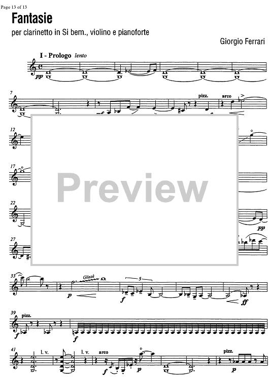 Digital Sheet Music for Fantasie - Score by , Giorgio Ferrari scored for B-flat Clarinet/Violin/Piano; id:351209