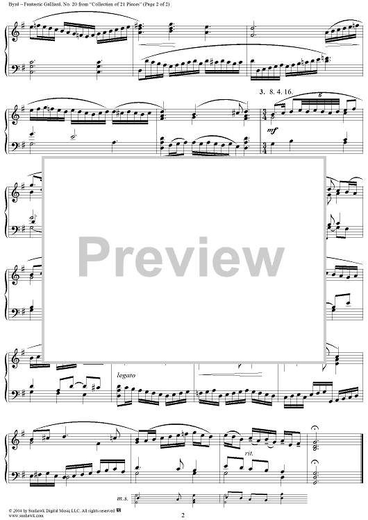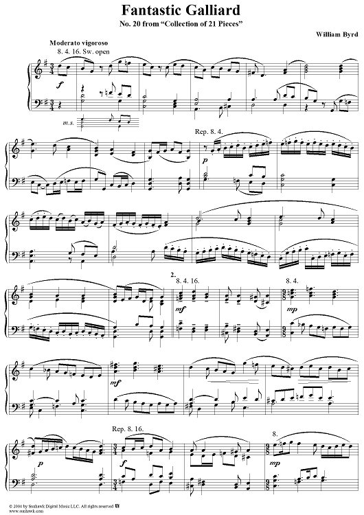 Digital Sheet Music for Fantastic Galliard by William Byrd scored for Organ Solo; id:303349