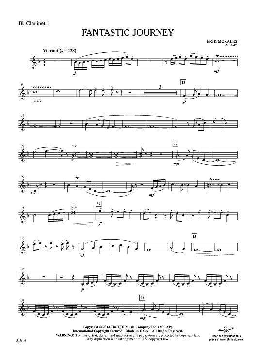 Digital Sheet Music for Fantastic Journey - Bb Clarinet 1 by Erik Morales scored for Concert Band; id:447938