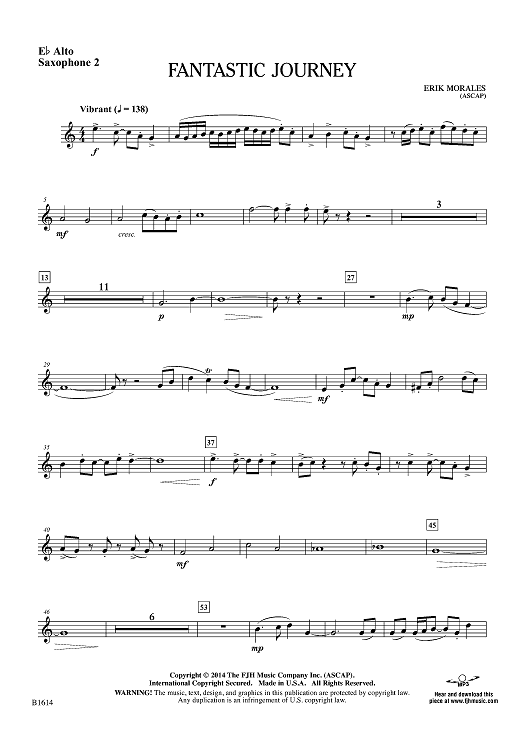 "Fantastic Journey - Eb Alto Sax 2" Sheet Music by Erik Morales