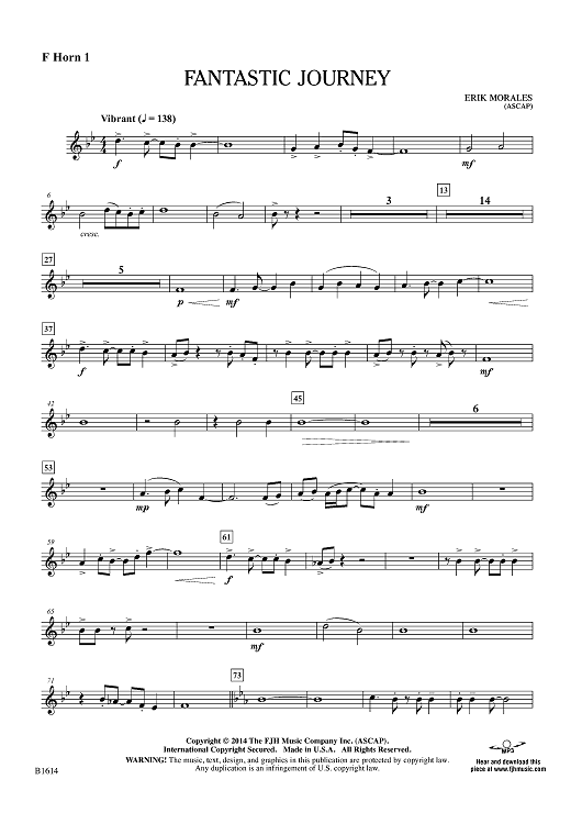 Digital Sheet Music for Fantastic Journey - F Horn 1 by Erik Morales scored for Concert Band; id:447949