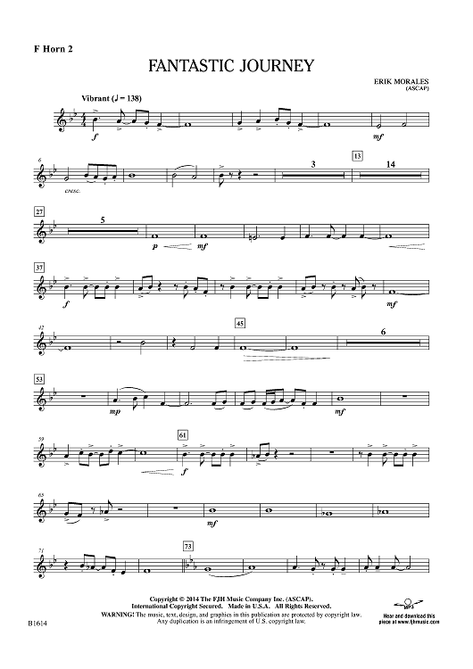 Digital Sheet Music for Fantastic Journey - F Horn 2 by Erik Morales scored for Concert Band; id:447950