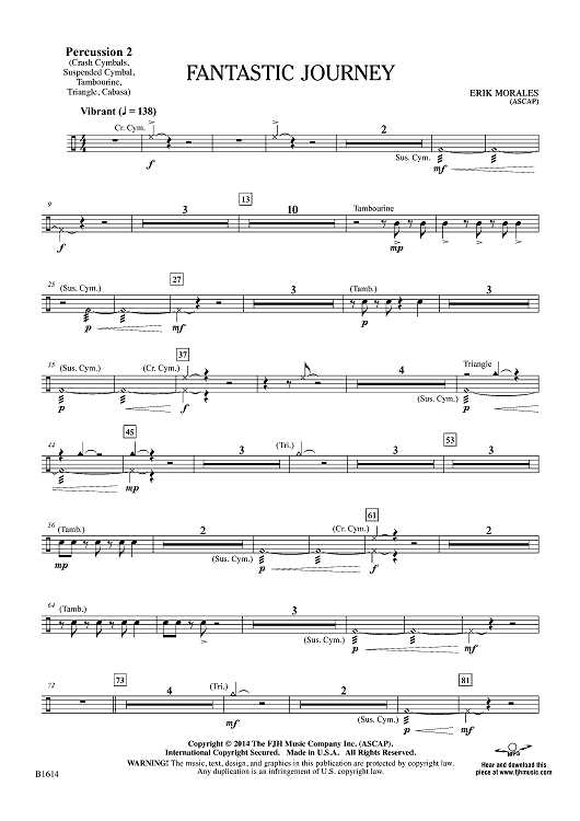 Digital Sheet Music for Fantastic Journey - Percussion 2 by Erik Morales scored for Concert Band; id:447961