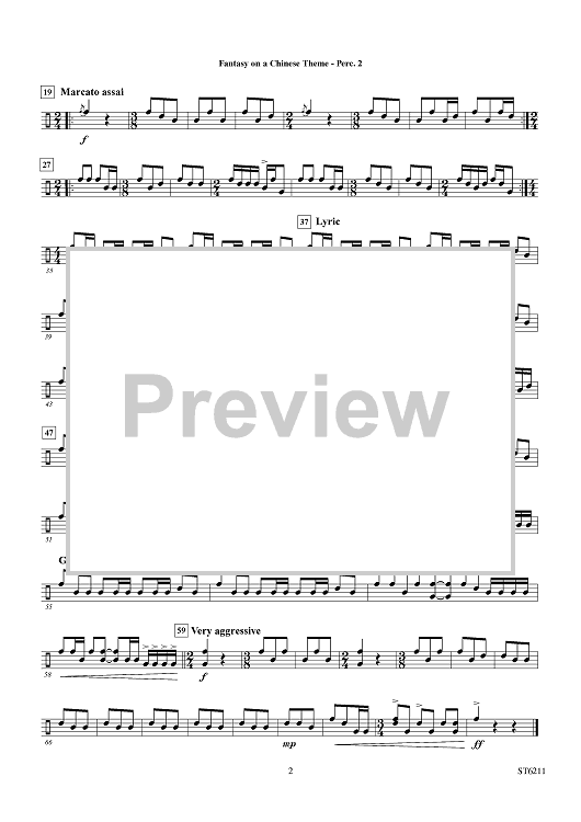 Digital Sheet Music for Fantasy on a Chinese Theme - Percussion 2 by Traditional Chinese, Francis Osentowski scored for Orchestra; id:411566