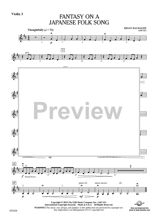 Digital Sheet Music for Fantasy on a Japanese Folk Song - Violin 3 (Viola T.C.) by Brian Balmages scored for String Orchestra; id:437132