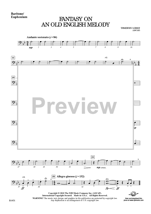 "Fantasy On An Old English Melody - Baritone/Euphonium" Sheet Music by Timothy Loest