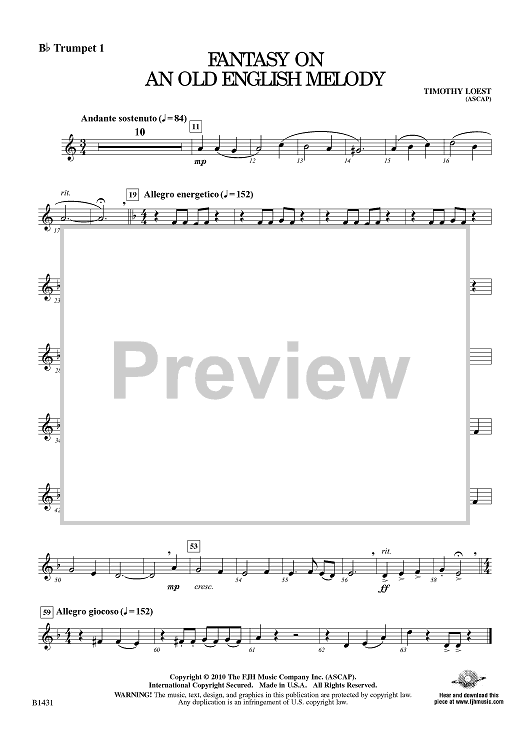 "Fantasy On An Old English Melody - Bb Trumpet 1" Sheet Music by Timothy Loest