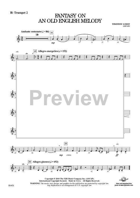 "Fantasy On An Old English Melody - Bb Trumpet 2" Sheet Music by Timothy Loest