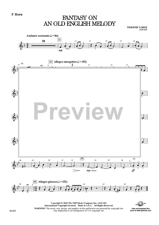 "Fantasy On An Old English Melody - F Horn" Sheet Music by Timothy Loest