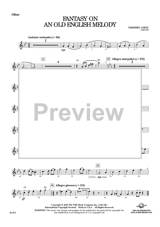 "Fantasy On An Old English Melody - Oboe" Sheet Music by Timothy Loest
