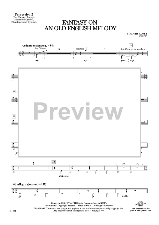 "Fantasy On An Old English Melody - Percussion 2" Sheet Music by Timothy Loest