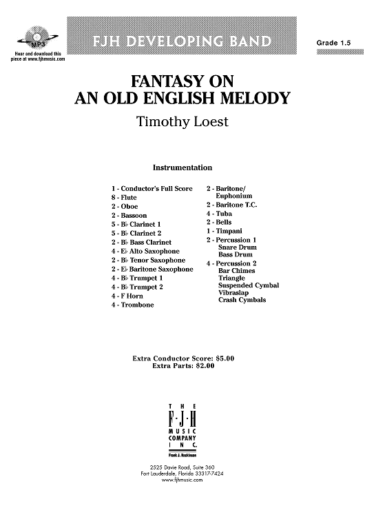 Digital Sheet Music for Fantasy On An Old English Melody - Score by Timothy Loest scored for Developing Band; id:415218