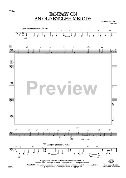 "Fantasy On An Old English Melody - Tuba" Sheet Music by Timothy Loest
