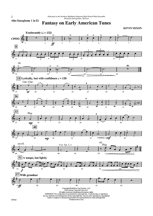 "Fantasy on Early American Tunes - Alto Sax 1" Sheet Music by Kevin Mixon