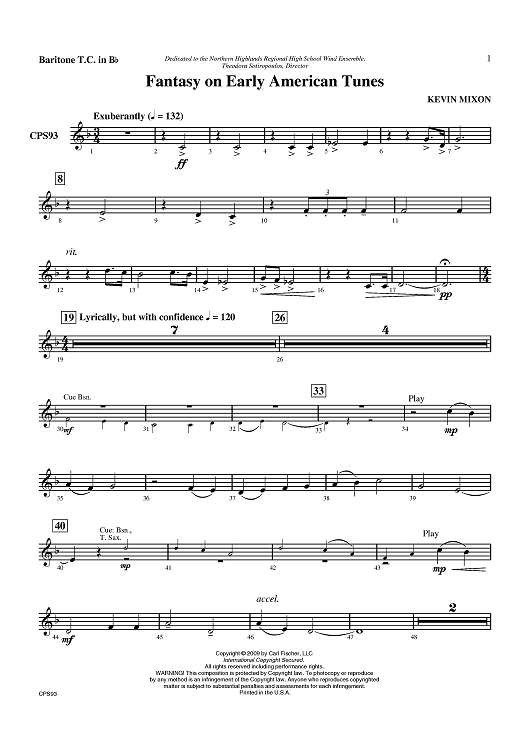 "Fantasy on Early American Tunes - Baritone (Treble Clef)" Sheet Music by Kevin Mixon