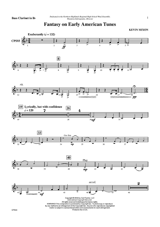 "Fantasy on Early American Tunes - Bass Clarinet" Sheet Music by Kevin Mixon