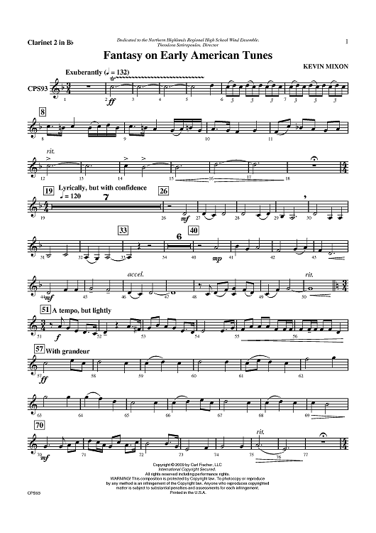 "Fantasy on Early American Tunes - Clarinet 2 in B-flat" Sheet Music by Kevin Mixon