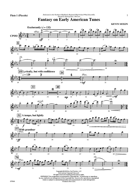 "Fantasy on Early American Tunes - Flute 1/Piccolo" Sheet Music by Kevin Mixon