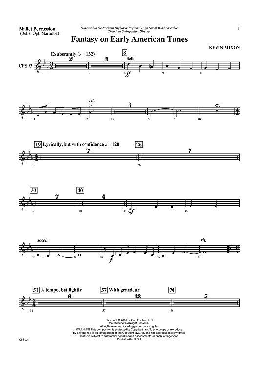 Digital Sheet Music for Fantasy on Early American Tunes - Mallet Percussion by Kevin Mixon scored for Concert Band; id:405783
