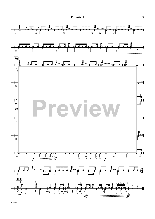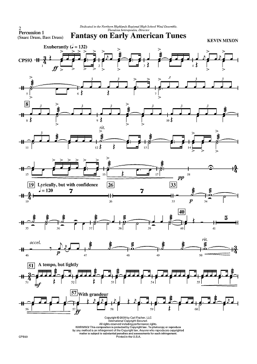 "Fantasy on Early American Tunes - Percussion 1" Sheet Music by Kevin Mixon