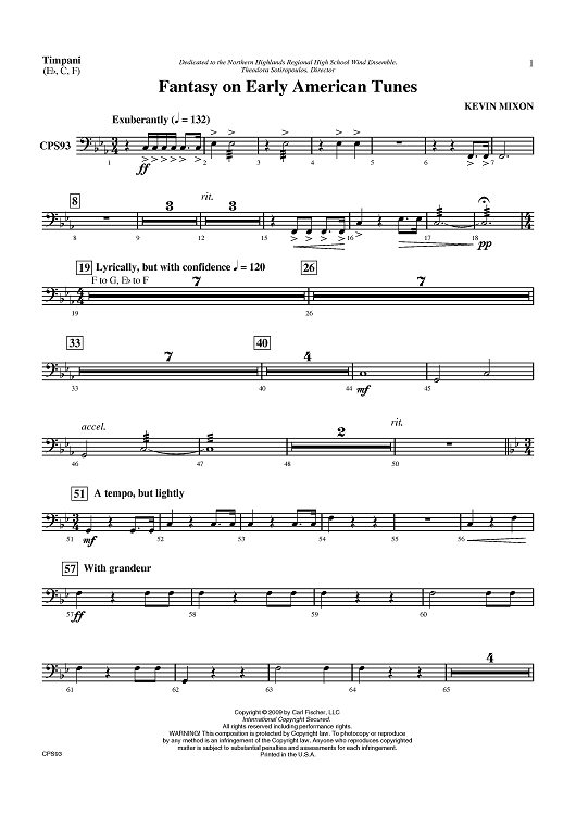 "Fantasy on Early American Tunes - Timpani" Sheet Music by Kevin Mixon