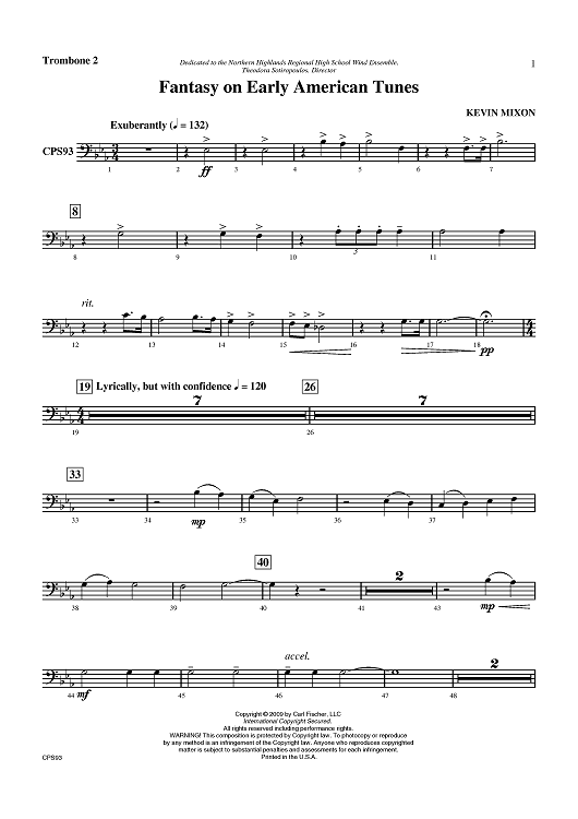 "Fantasy on Early American Tunes - Trombone 2" Sheet Music by Kevin Mixon