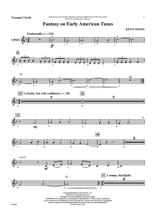 "Fantasy on Early American Tunes - Trumpet 2 in B-flat" Sheet Music by Kevin Mixon