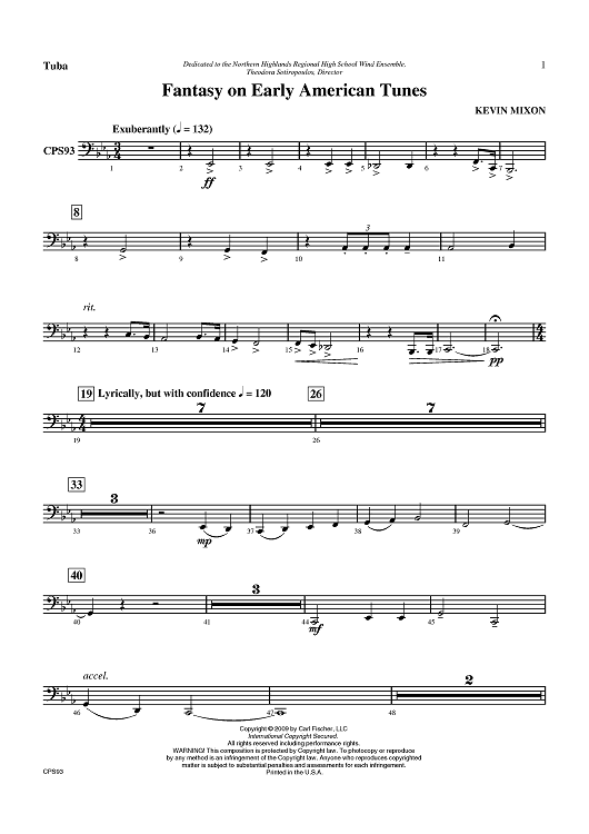 "Fantasy on Early American Tunes - Tuba" Sheet Music by Kevin Mixon