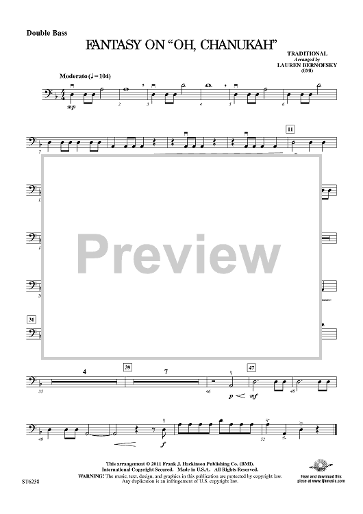Digital Sheet Music for Fantasy on "Oh, Chanukah" - Double Bass by Traditional, Lauren Bernofsky scored for String Orchestra; id:421764