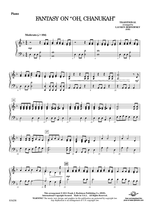 Digital Sheet Music for Fantasy on "Oh, Chanukah" - Piano by Traditional, Lauren Bernofsky scored for String Orchestra; id:421765