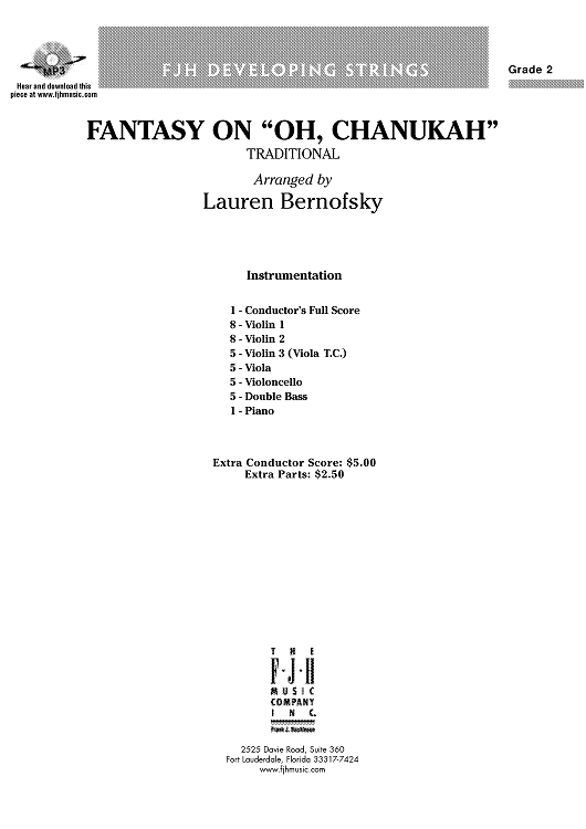 Digital Sheet Music for Fantasy on "Oh, Chanukah" - Score by Traditional, Lauren Bernofsky scored for String Orchestra; id:421758