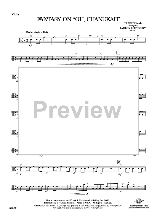 Digital Sheet Music for Fantasy on "Oh, Chanukah" - Viola by Traditional, Lauren Bernofsky scored for String Orchestra; id:421762